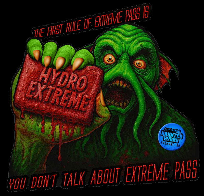 Upgrade to the extreme pass and you will get an exclusive Haunted Hydro extreme t-shirt letting our monsters know that you like it rough! You may be touched, separated from the group, get some blood on you and more!